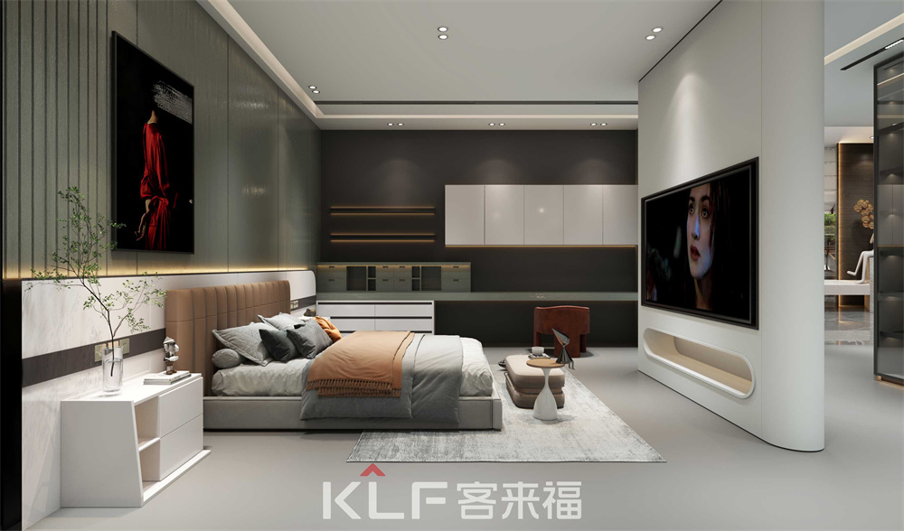 豪嘉系列臥室背景墻采用的是水光綠顏色,床頭背板月牙白顏色,兩邊的衣柜和吊柜柜體采用的是黑木紋柜體,加上月牙白的門(mén)板,讓人一進(jìn)臥室就能感覺(jué)臥室的溫馨和舒適。
