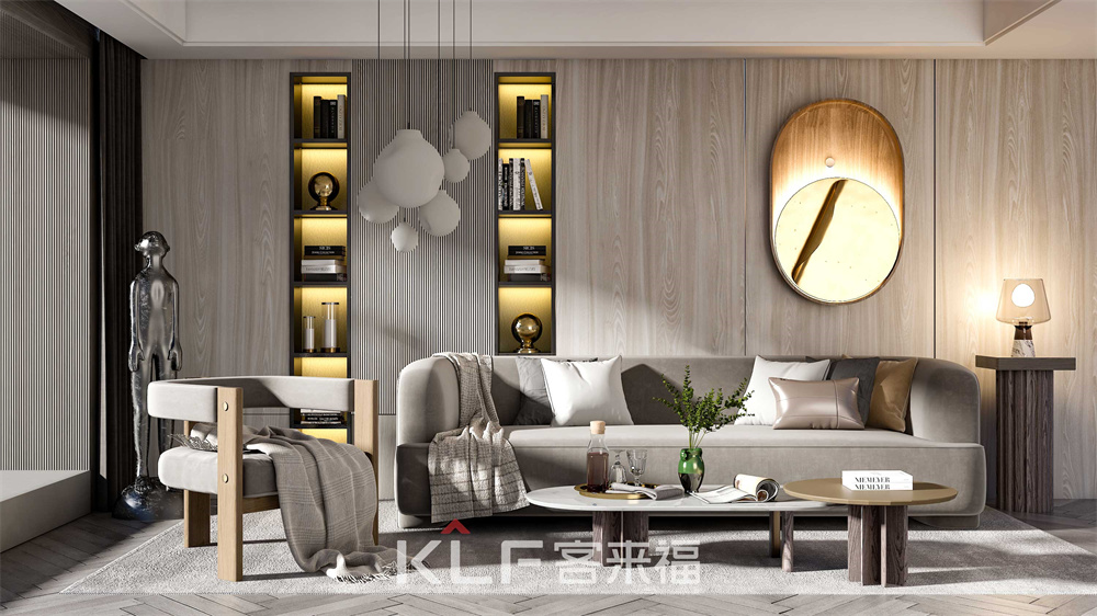 以原木色為基調(diào),讓空間木質(zhì)感更強烈,木材自然形成的紋理在經(jīng)歷精工匠造后,讓自然和時光的沉淀變得越發(fā)清晰可見,塑造出的厚重感和不經(jīng)意間流露出的華貴感,讓木飾面色溫和舒適,給人一種自然而沉靜的感覺。