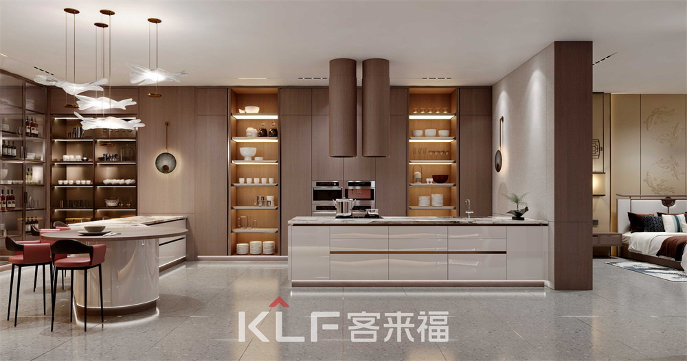 一體化餐廚空間,優(yōu)化整體空間結構的同時,讓家庭成員更好的參與到日常的美食烹飪當中。超大圓弧實木臺面擴大用餐空間,增加空間利用率。整面入墻式柜體,打破廚房壓抑雜亂的刻板印象,讓家電擁有自己的專屬區(qū)域。