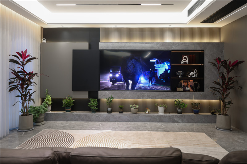 客廳高級構(gòu)造,以創(chuàng)意、新意展現(xiàn)定制魅力。整體開放式設(shè)計,以無主燈設(shè)計突顯空間氛圍感,氣質(zhì)顯露。