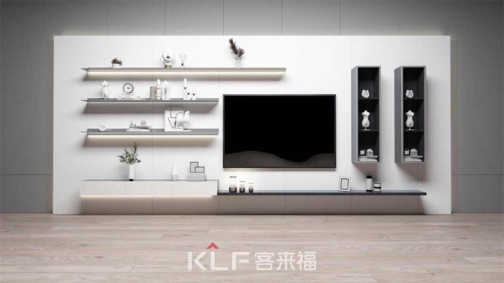 拉深構(gòu)造增加空間距離,以灰、白、黑三色為基調(diào),簡(jiǎn)約風(fēng)格的基礎(chǔ)上更顯現(xiàn)代時(shí)尚輕奢。嵌入式電視背景墻設(shè)計(jì),以黑為底打造沉穩(wěn)大氣的新風(fēng)韻。