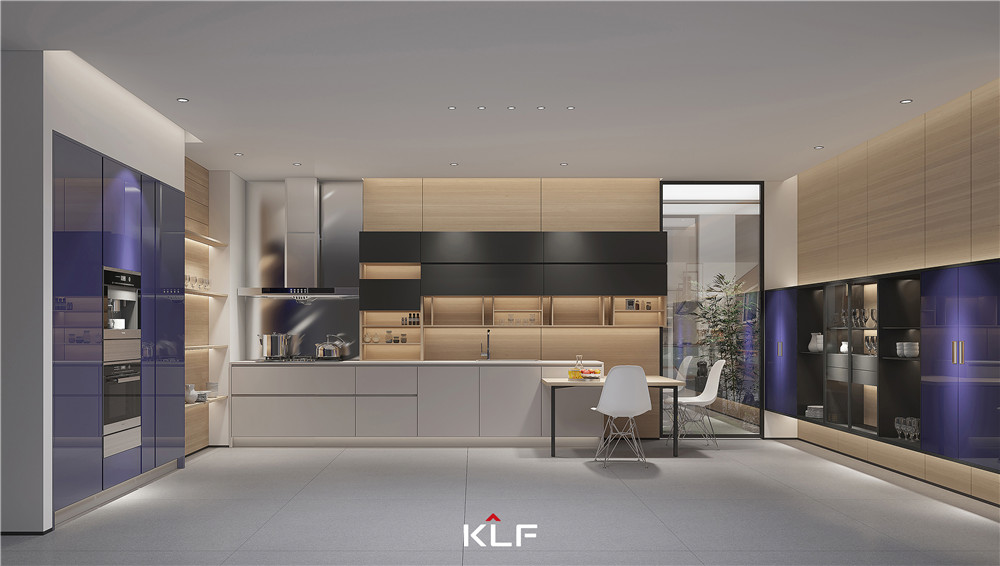 廚房以U型設(shè)計(jì)呈現(xiàn),豐富的收納空間還原了日常干凈整潔的居家環(huán)境;科技橡木搭配魔力黑、紫棠色也更儒雅,地柜空間采用茶白,視覺上更顯清爽;廚房在收納抽屜上運(yùn)用了新款的上翻電動(dòng)靈云展、電動(dòng)上翻折疊門等科技。